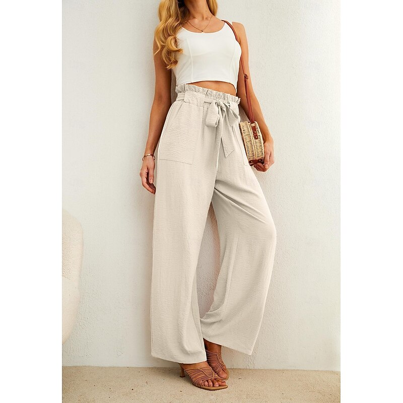 Women's Wide Leg Casual Pants with Pocket, Lightweight high Waist, Adjustable lace up Knot 14