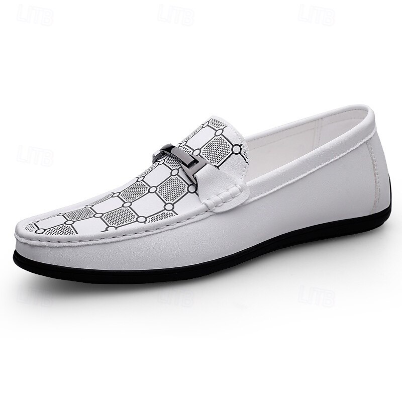 Men's White Loafers & Slip-Ons with Decorative Chain Detail and Soft Cushioned Insole - Perfect for Casual, Business and Formal Occasions 23