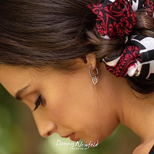 925 Sterling Silver Heart Hoop Earrings with Heart Charm, Hypoallergenic Hoop Earrings for Girls and Women, Dainty Earrings, Trendy Jewelry by Paz Creations, Gold/Rose Gold/Silver Charm 1