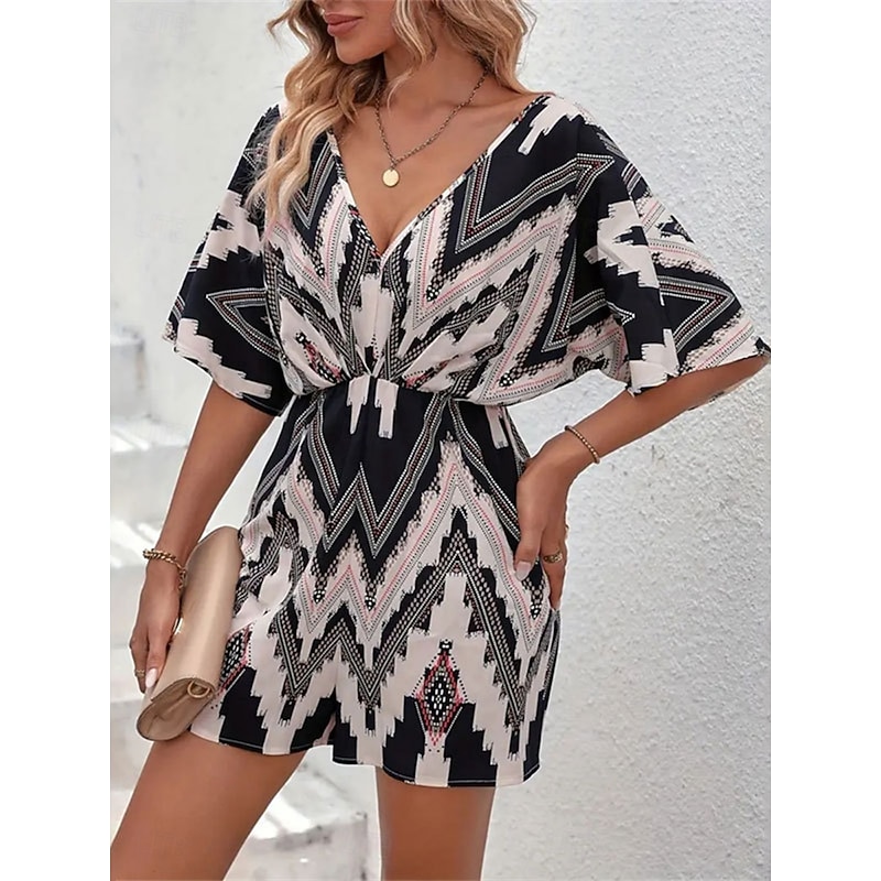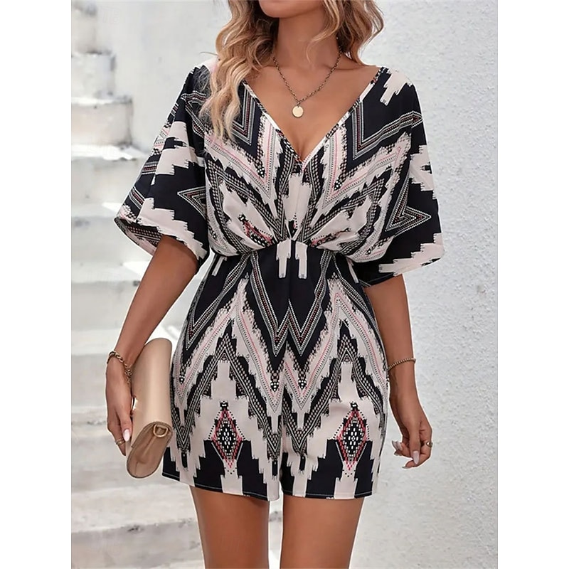 More information about Women's Normal Romper Active Geometric Short Sleeve V Neck High Waist Print Vacation Daily Regular Fit Black Summer