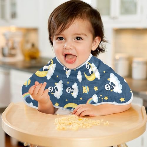 J JOYSAY Panda Moon Cloud Blue Baby Burp Cloths for Boys Girls Large 22''x11'' Cotton 4 Layer Baby Spit-Up Rags for Babies Unisex one sizex2 5