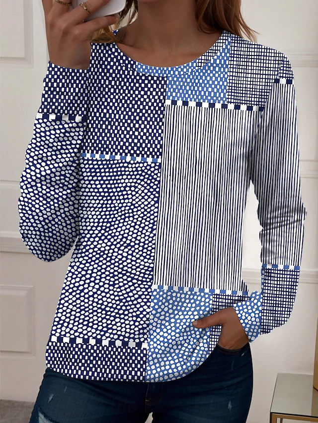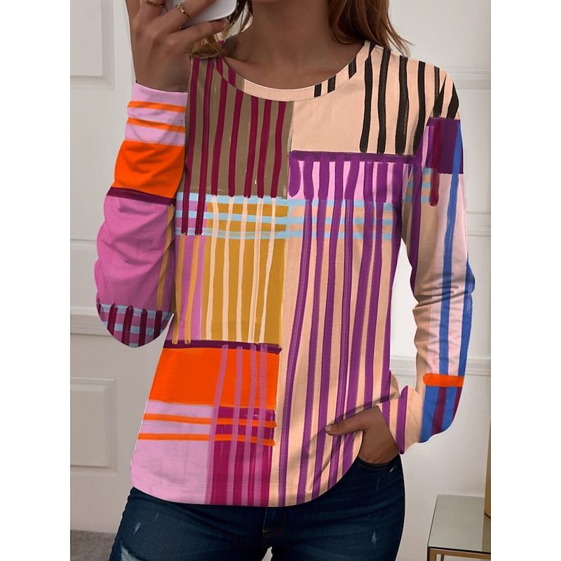 More information about Women's T shirt Long Sleeve Crew Neck Long Sleeve Tunic Graphic Geometric Vintage Casual Regular Tops Daily Print Pink Blue Purple Green Spring Fall Prefall