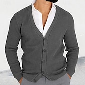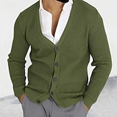 More information about Men's Cardigan Sweater Cropped Sweater Knit Sweater Ribbed Knit Regular Tops Buttons Plain V Neck Fashion Classic Vacation Daily Wear Clothing Apparel Fall Winter Black Military Green M L XL