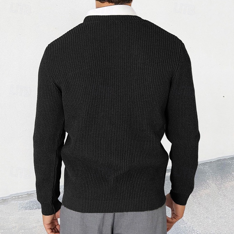 Highlights - Perfect for fall and winter seasons - Features long sleeves for added warmth - Designed for men - Classic and casual style - Suitable for dates and vacations - Stylish button design - V neckline for a sophisticated look - Ribbed knit style for added texture and detail.