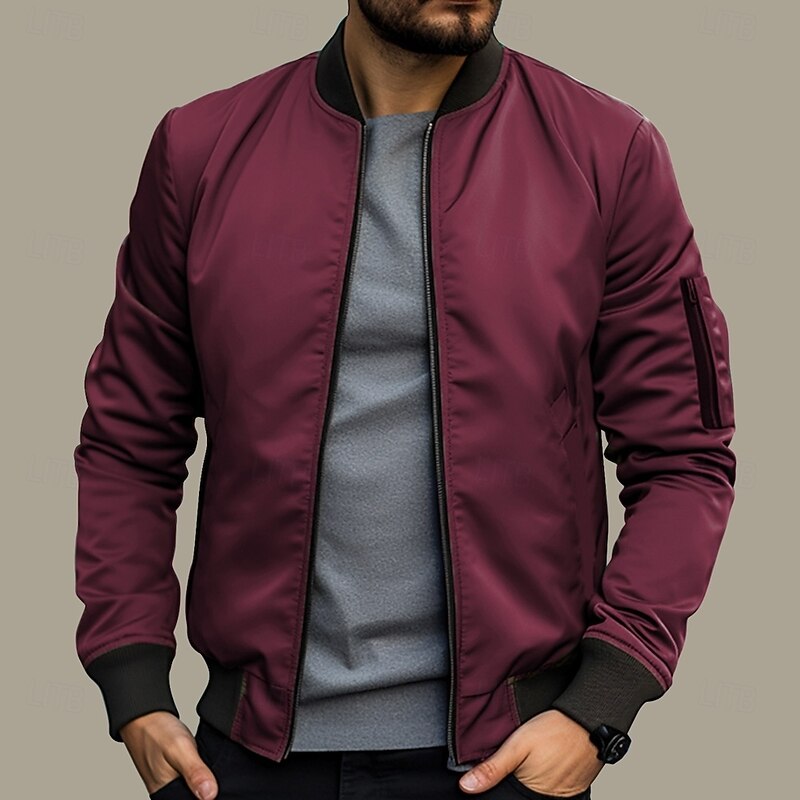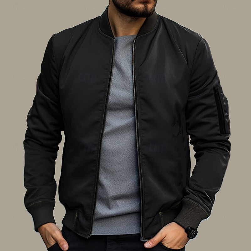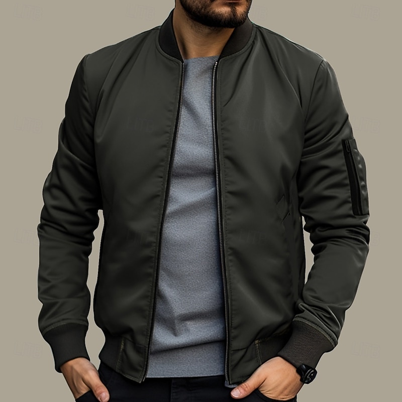 More information about Men's Bomber Jacket Transition Jacket Daily Wear Windbreaker Zipper Pocket All Seasons Plain Streetwear Stand Collar Regular Black Yellow Red Army Green Dark Blue Jacket