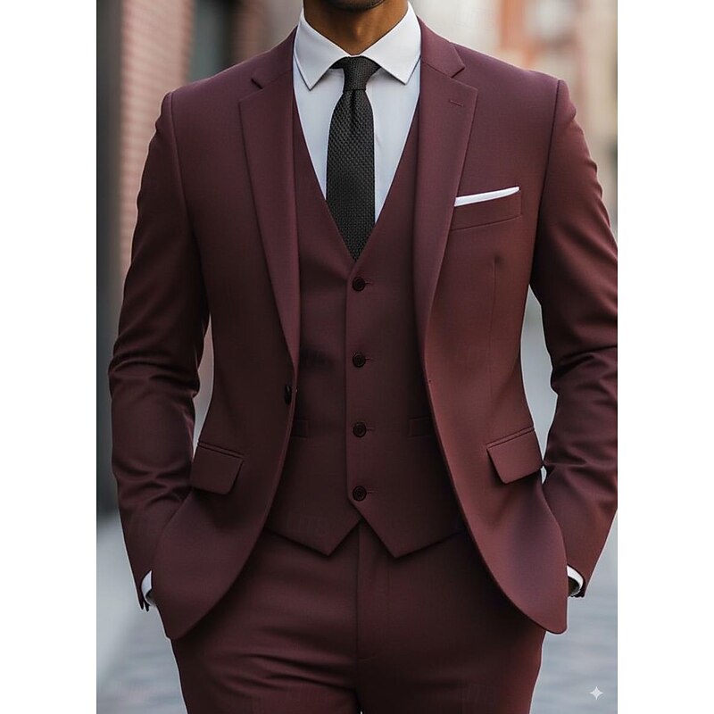 $115.99 - Men's Wedding Party Business Suits Notch Lapel Black Burgundy Daily Formal Solid Colored Tailored Fit 3 Piece Single Breasted One-button 2025. Shop for cheap Business Suits online? Buy at lightinthebox.com on sale today!