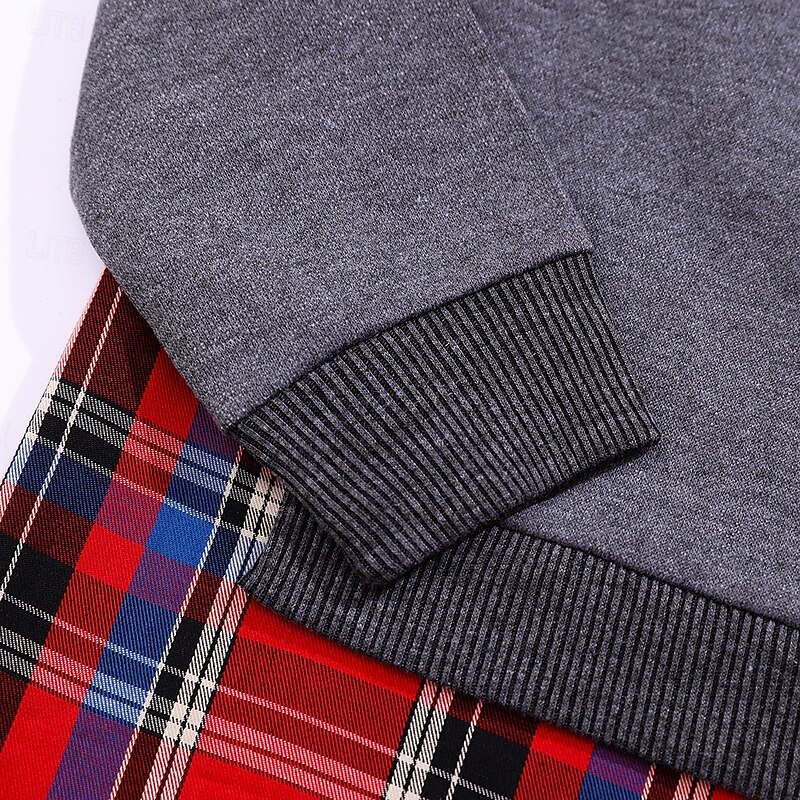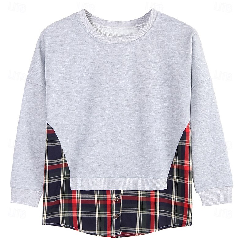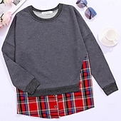 More information about Women's Hoodies Plaid Casual Long Sleeve Crew Neck Regular Tops Casual Patchwork Light Grey Dark Gray Fall