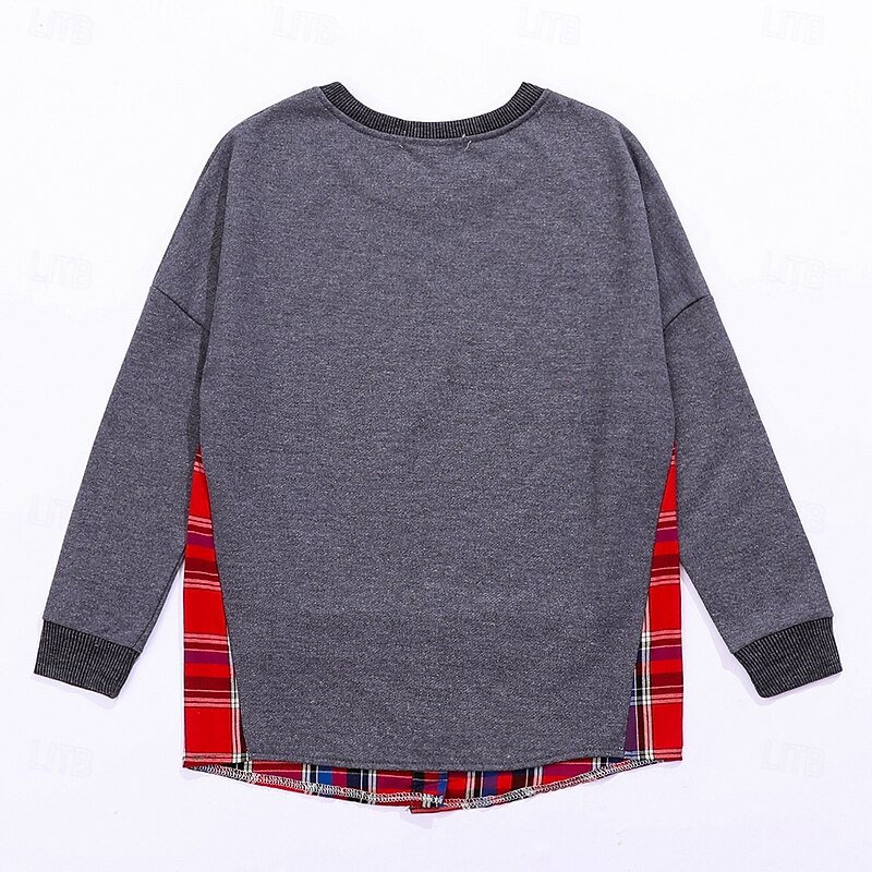 Women's Hoodies Plaid Casual Long Sleeve Crew Neck Regular Tops Casual Patchwork Light Grey Dark Gray Fall 13