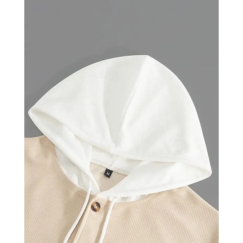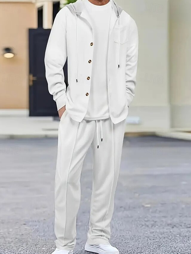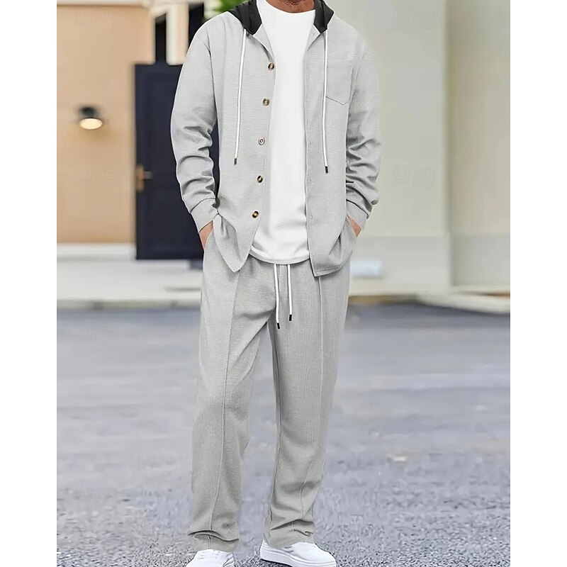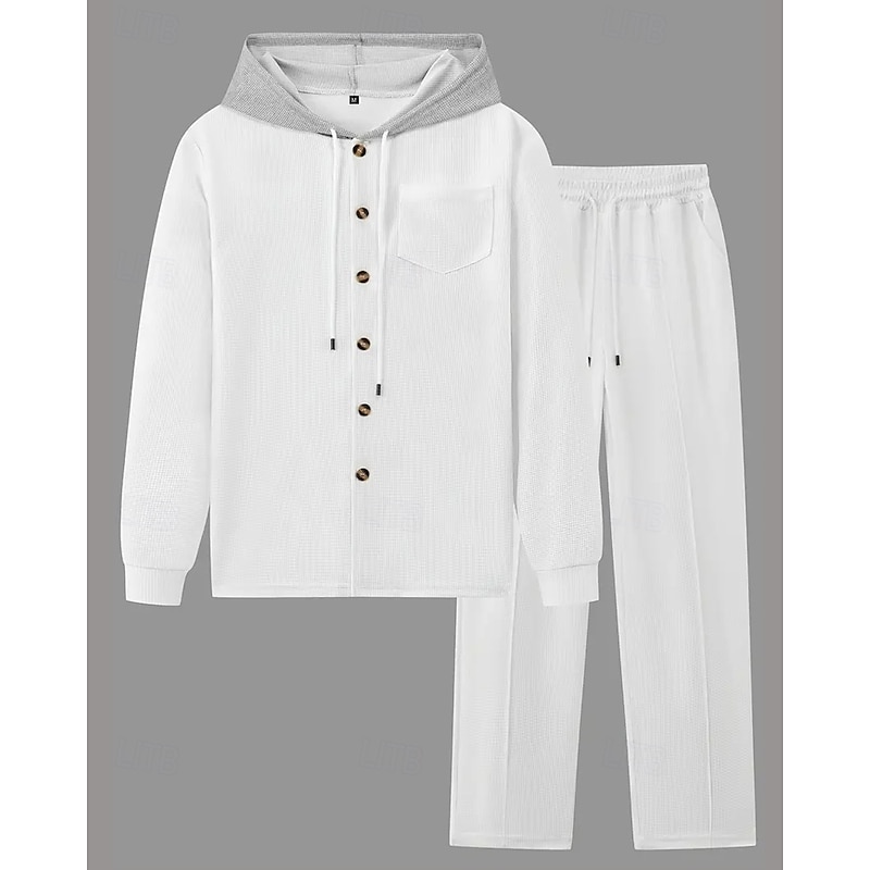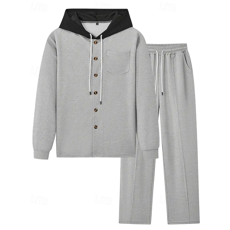 More information about Men's Lightweight Jacket Waffle Jacket Casual Jacket Set Vacation Daily Breathable Pocket 2 Piece Spring Fall Color Block Fashion Classic Hooded Regular Black White Khaki Gray Jacket