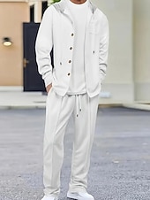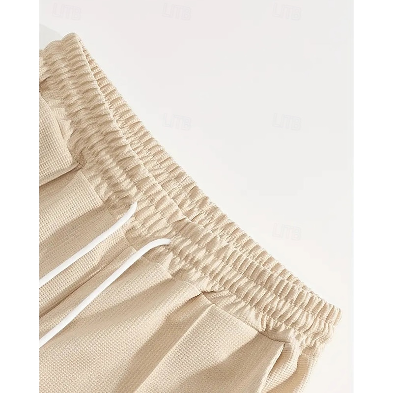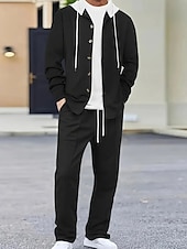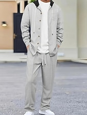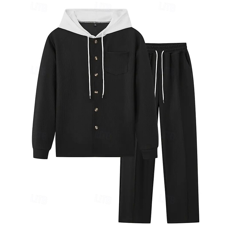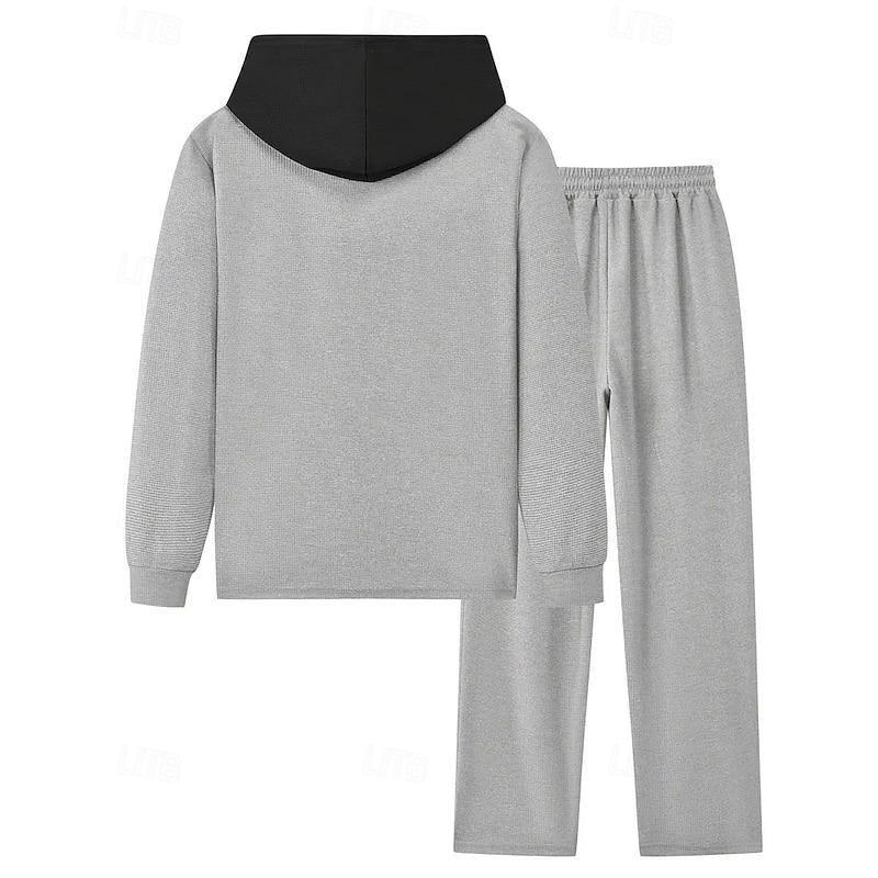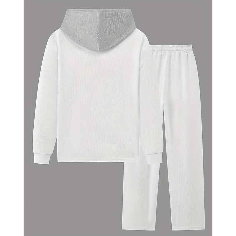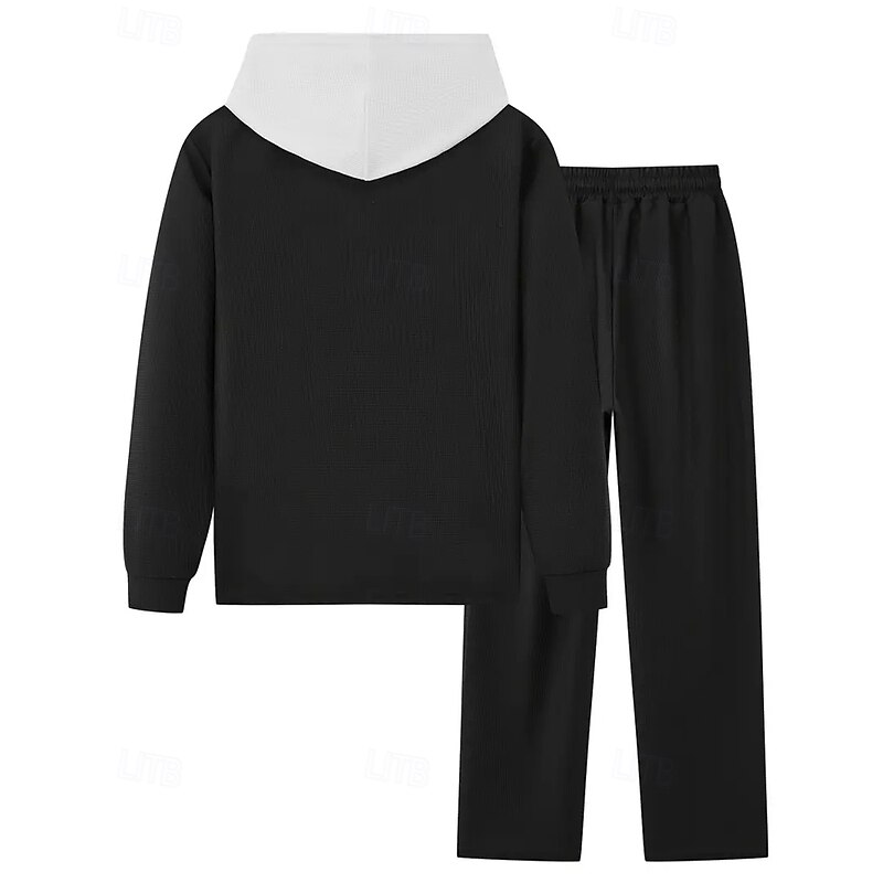 More information about Men's Lightweight Jacket Waffle Jacket Casual Jacket Set Vacation Daily Breathable Pocket 2 Piece Spring Fall Color Block Fashion Classic Hooded Regular Black White Khaki Gray Jacket