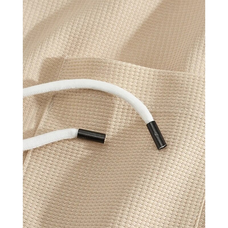 Men's Lightweight Jacket Waffle Jacket Casual Jacket Set Vacation Daily Breathable Pocket 2 Piece Spring Fall Color Block Fashion Classic Hooded Regular Black White Khaki Gray Jacket 20