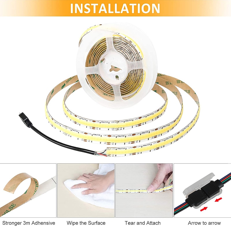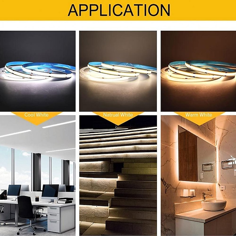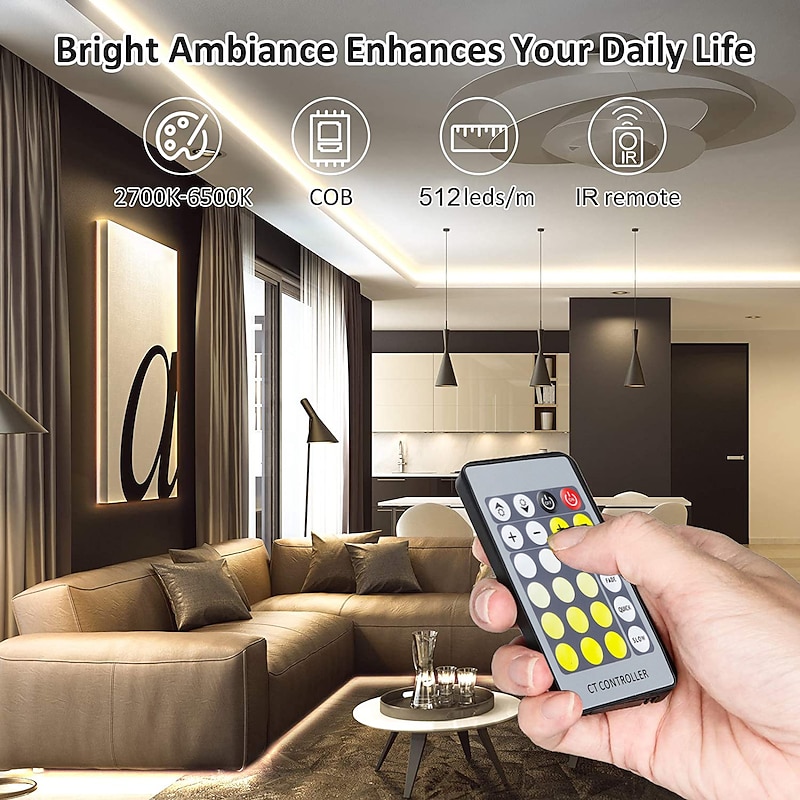 16.4ft Cob Flexbile Neon LED Strip Light Waterproof IR24 Key Controller with 24V Adapter Warm Cold White for Cabinet Bedroom Kitchen TV Mirror 11