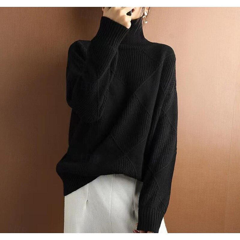 More information about Women's Sweater Pullover Sweater Jumper Casual Soft Pure Color Ribbed Turtleneck Knitted Long Sleeve Regular Tops Knit Outdoor Daily Weekend Black Yellow Fall Winter