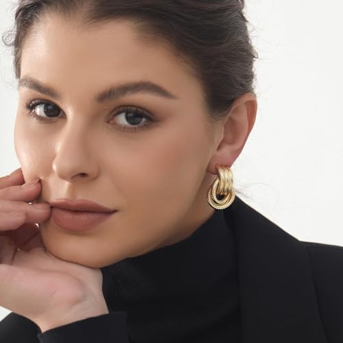 • Design: The twisted circular earrings are geometric knot design and chunky drop links for a high-end look.The earrings are made a bold fashion statement nice for everyday wear or special occasions.