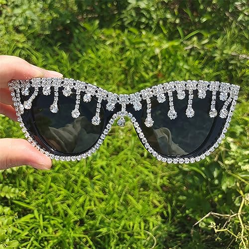 More information about willochra Cat Eye Women Tassel Sunglasses Crystal Rhinestone Sparkling Bejewelled Sunnies Funky party sunglasses