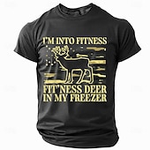 HOT ! Men's T-Shirt - Funny Hunting Graphic Tee, 'I'm Into Fitness, Fit'ness Deer In My Freezer' Short Sleeve