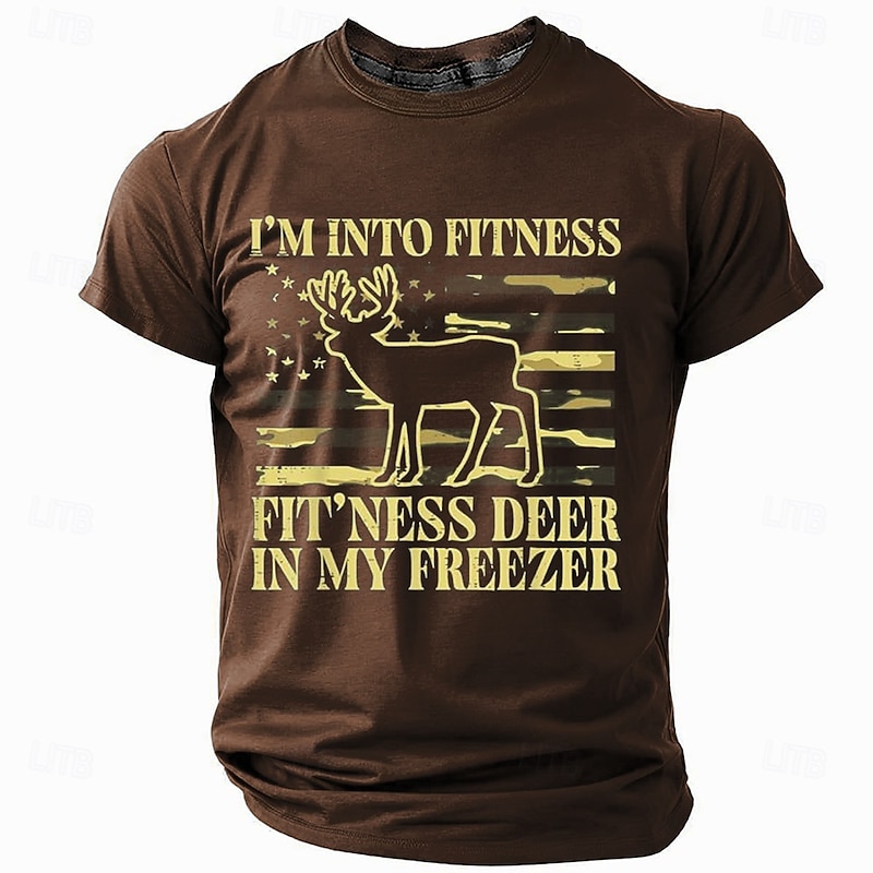 Men's T-Shirt - Funny Hunting Graphic Tee, 'I'm Into Fitness, Fit'ness Deer In My Freezer' Short Sleeve 1