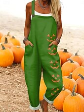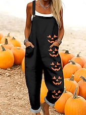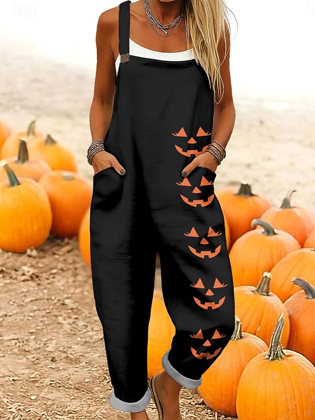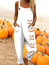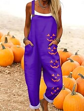 More information about Halloween Women's Jumpsuit Active Graphic Sleeveless Sleeveless Wide Leg Pocket Buttons Vacation Halloween Loose Fit Black White Purple Summer