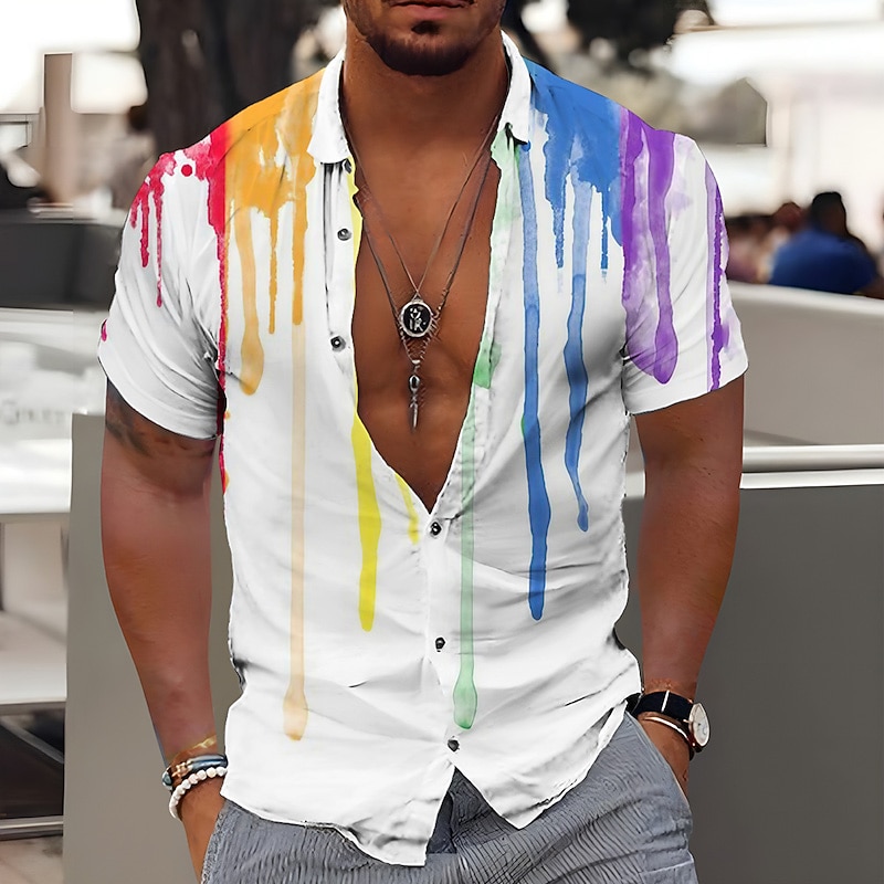 More information about Men's Gradient Shirt Button Up Shirt Short Sleeve Fashion Designer Casual Outdoor Casual Summer Spring Turndown Print Black White Yellow Purple Orange