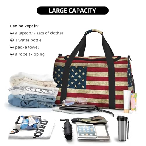 HOT ! American Flag Travel Bag, Weekender Bags For Women Men For Outdoor Adventures, Ideal For Camping And Hiking