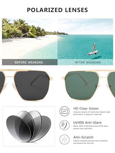 (2 PACK) Retro Oversized Square Polarized Sunglasses for Women and Men Vintage Shades Classic Large Metal Sun Glasses 4