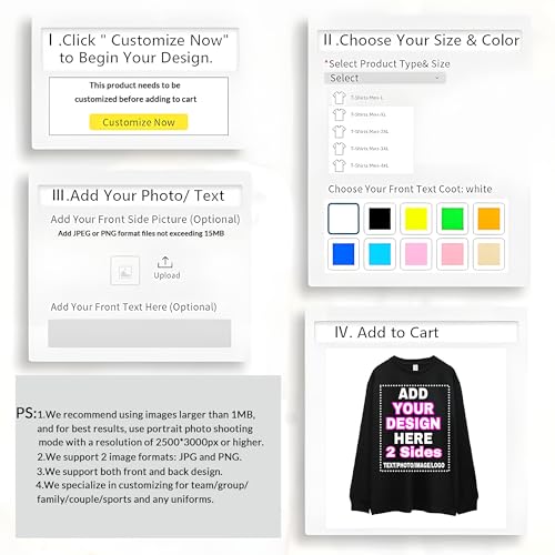 • Custom: Please upload a clear image (at least 1000 x 1000 pixels). Letter colors may vary slightly due to different computer monitor settings. Please make sure your image and letters are correct. Let us design your own customized long sleeve shirt!