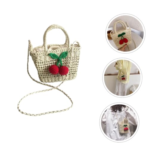 NOLITOY Handmade Portable Storage Bag for Boy Girl Straw Design Crossbody Handbag with Cherry Accents for Girls and Women for Beach and Casual Outings 1