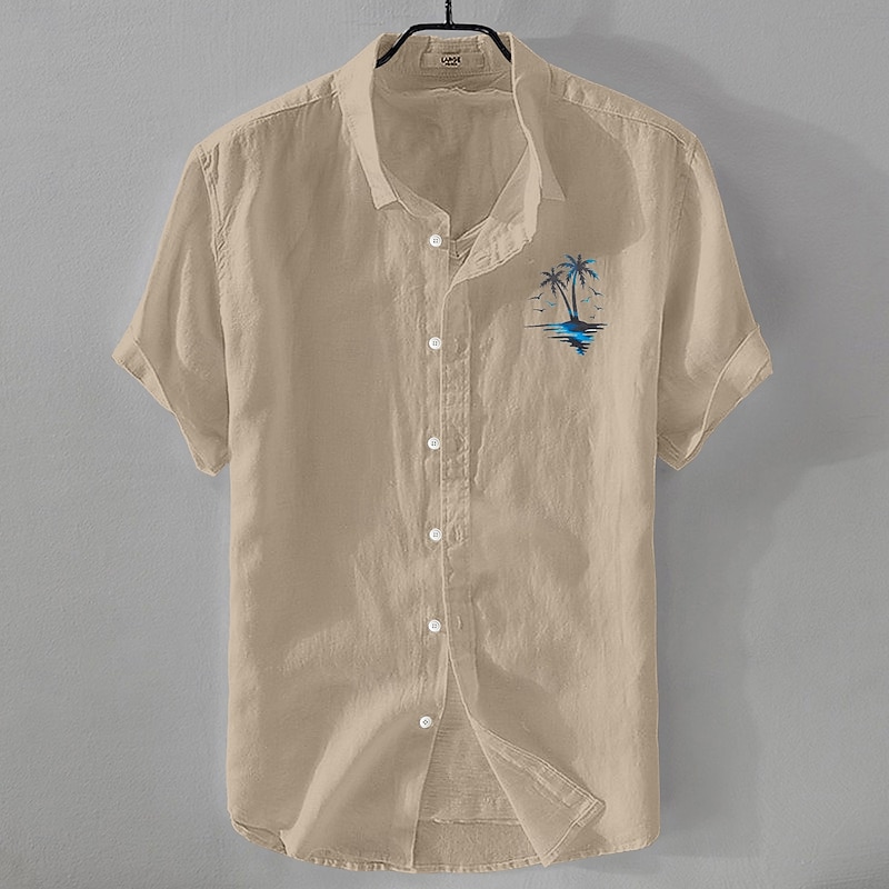 More information about Men's Shirt Linen Shirt Summer Shirt Beach Shirt Button Up Shirt Coconut Tree Vacation Holiday Black White Pink Blue Short Sleeve Turndown Summer Clothing Apparel