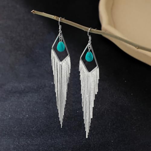 HOT ! Tassel Earrings Long Tassel Dangle Drop Earrings for Woman Turquoise Earrings Pearl Drop Earrings Silver/Gold Drop Dangle Earrings Boho Western Turquoise Jewelry Statement Earrings Hypoallergenic for Valentines Day Prom Party