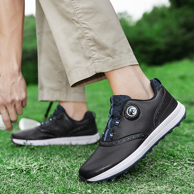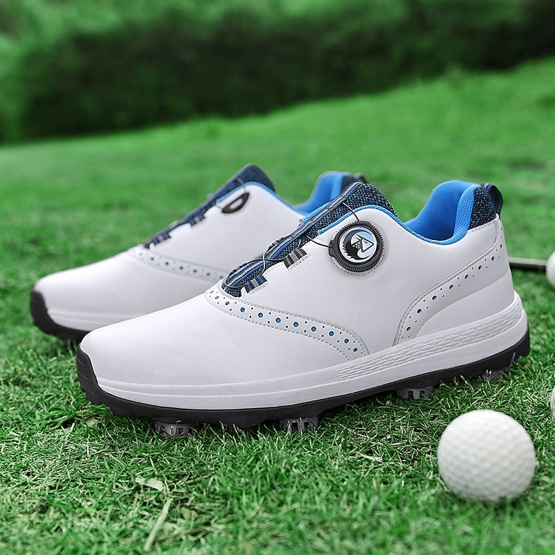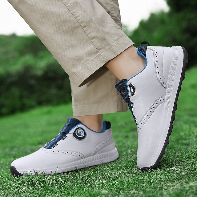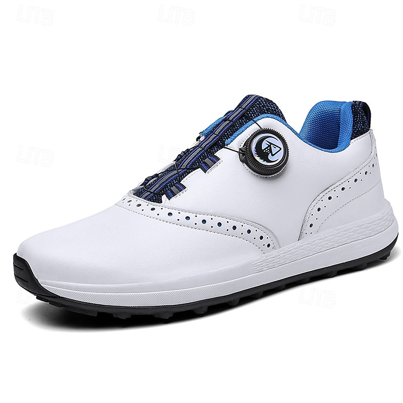 HOT ! Men's Modern White Golf Shoes with Blue Detailing, Lace-Up Design, Breathable Upper, Perfect for Professional Golfers