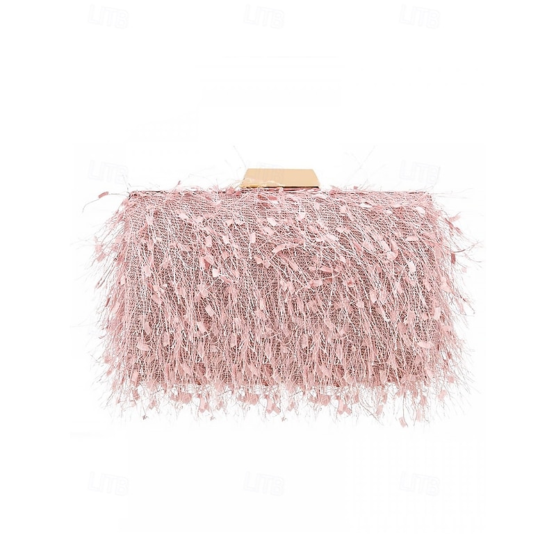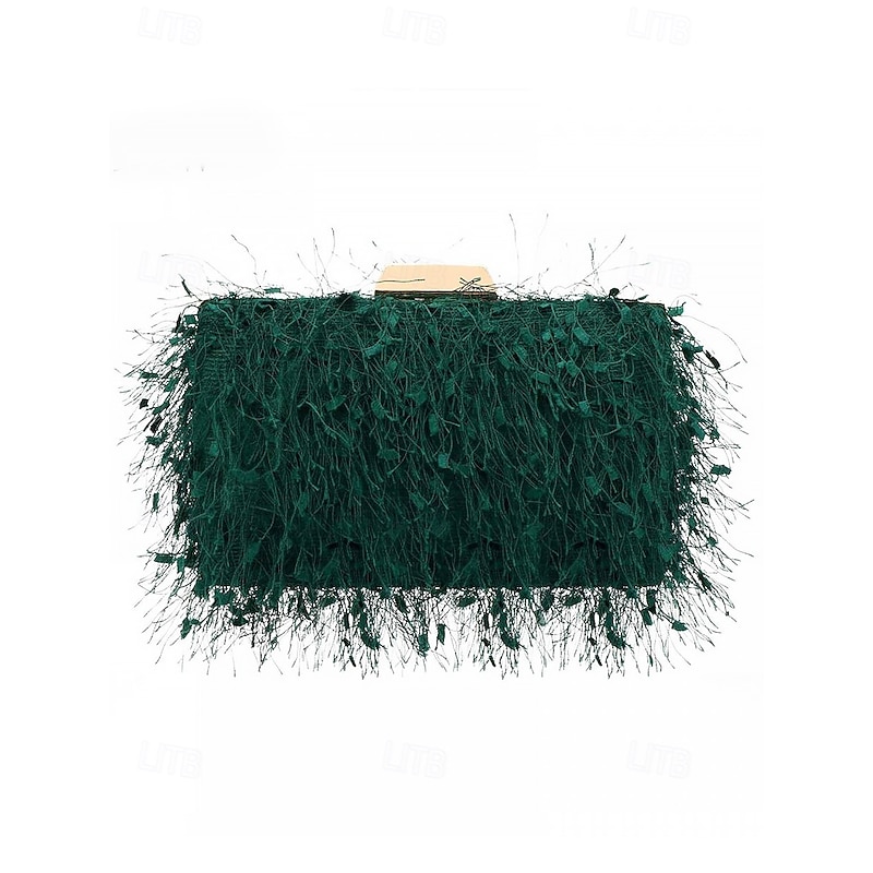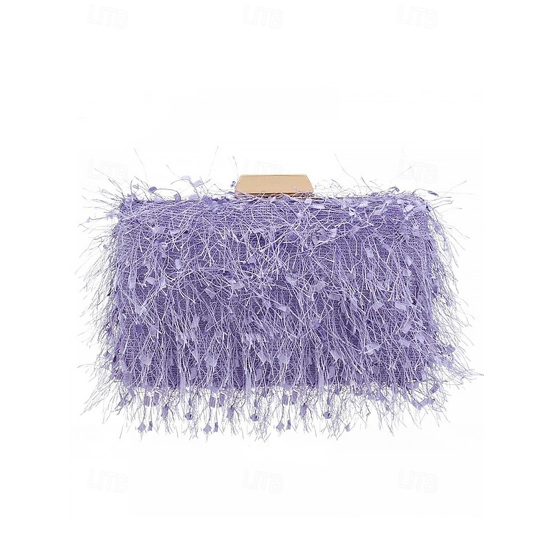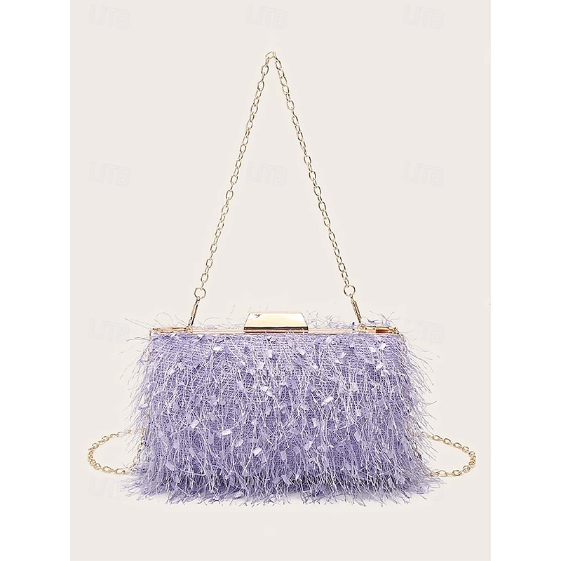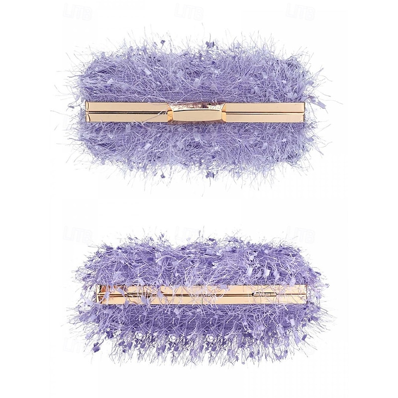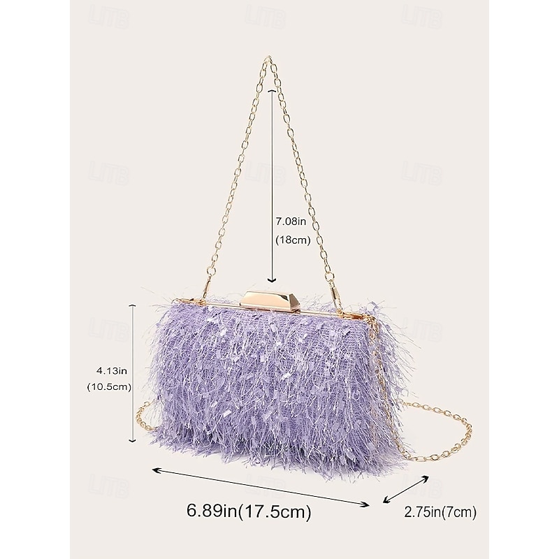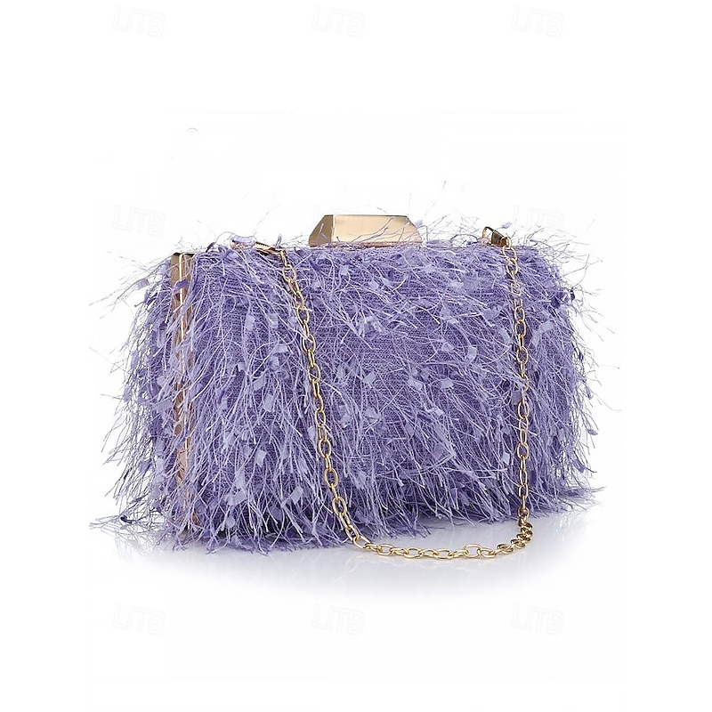 HOT ! Women's Chic Feathered Evening Clutch with Chain Strap, Elegant Purple Party Purse for Weddings, Proms, and Special Events