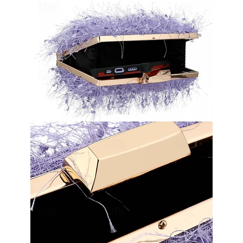 Women's Chic Feathered Evening Clutch with Chain Strap, Elegant Purple Party Purse for Weddings, Proms, and Special Events 17