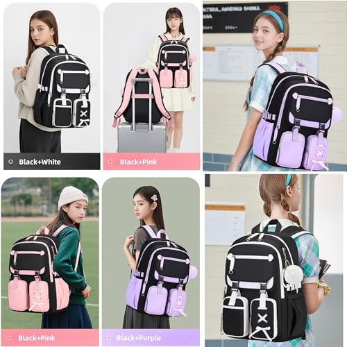 • Girls Schoolbag set is a style upgrade:Girls Backpack featuring a trendy, eye-catching design, complemented by a matching lunch bag.Girls backpack with lots of compartments could meet your various needs.This adorable set is the perfect companion for the new school year, whether your child is starting elementary school, transitioning to middle school, or gearing up for high school.