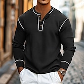 More information about Men's Waffle Tee T shirt Waffle Henley Shirt Tee Top Long Sleeve Shirt Solid Color Henley Outdoor Street Long Sleeve Buttons Color Block Clothing Apparel Daily Casual Street Style