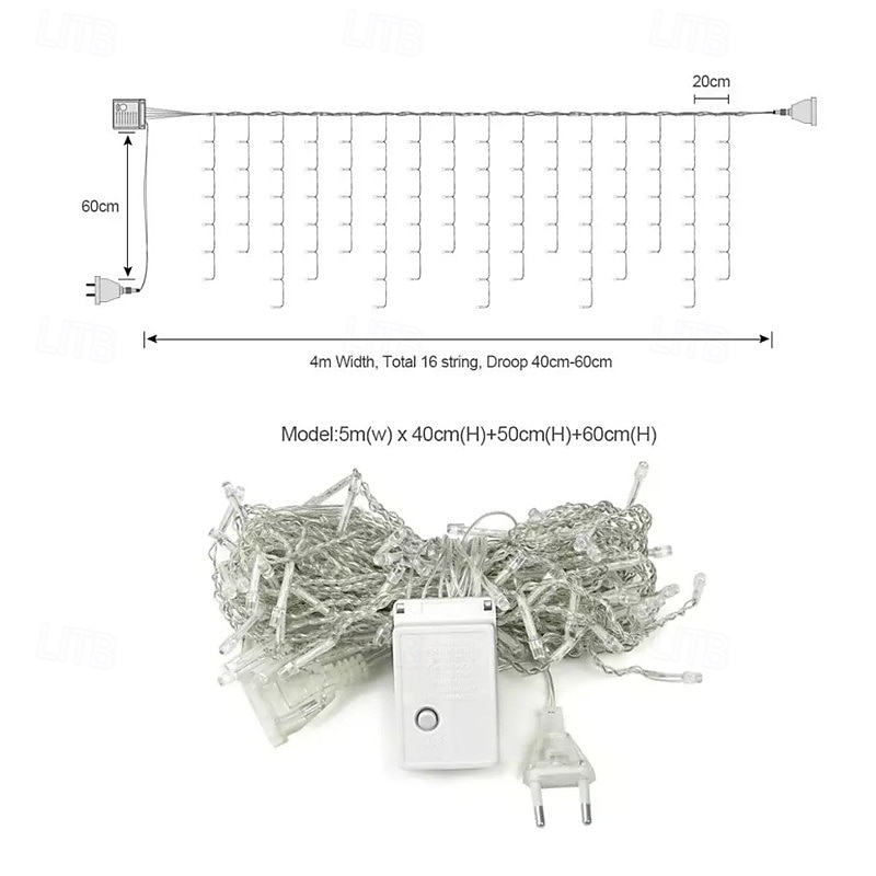 LED Icicle String Lights Xmas Holiday Curtain Lighting 3.5M 5M 216Leds For Xmas New Year Window Christmas Holiday Party Colorful Decoration AC220V 230V 240V EU Plug 19