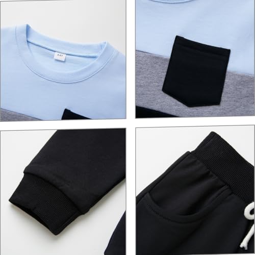 Toddler Boy Clothes 2Pcs Color Block Long Sleeve Sweatsuits Tops and Pants Fall Outfits Set 3