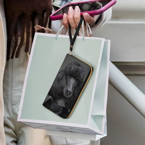 Adorable Black Poodle Leather Wallet Card Holder Purse Clutch Phone Pocket Credit Card Holder with Wristlet Strap 1