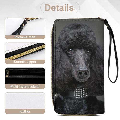 Adorable Black Poodle Leather Wallet Card Holder Purse Clutch Phone Pocket Credit Card Holder with Wristlet Strap 5