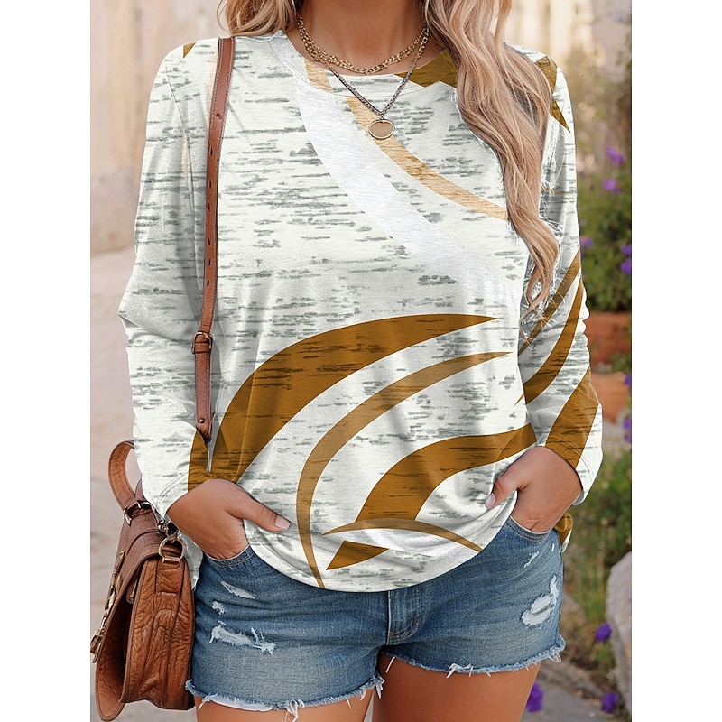 Women's Plus Size Tops T Shirt Graphic Abstract Print Long Sleeve Crew Neck Casual Daily Polyester Fall Winter Yellow Red 11