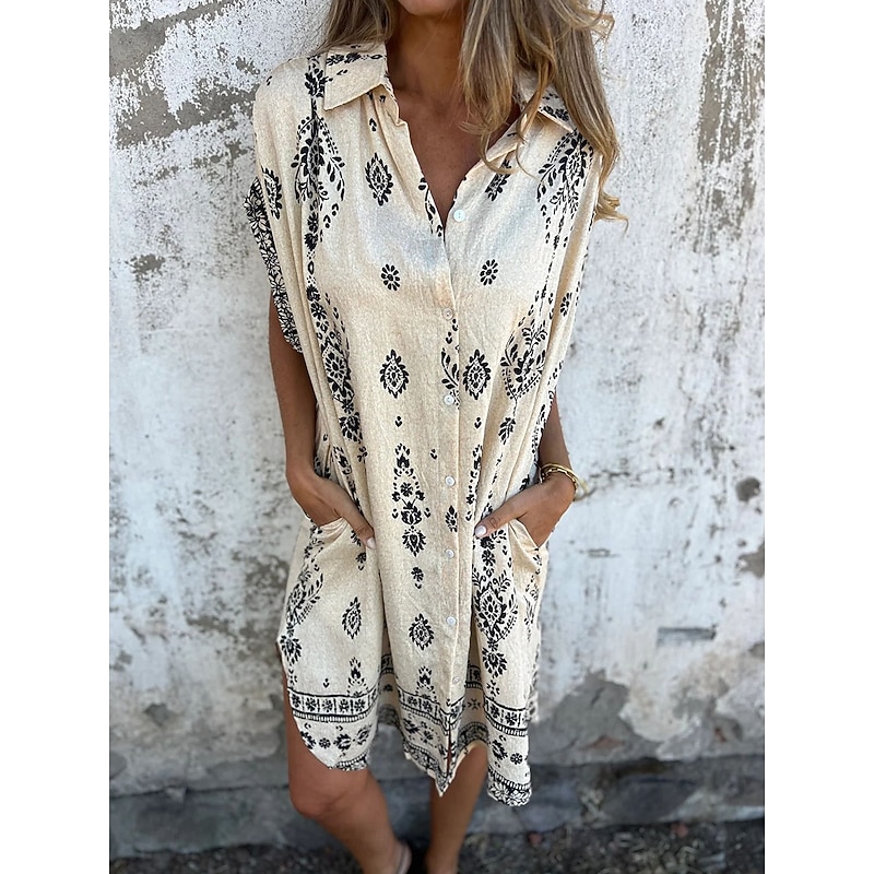 More information about Women's Cotton Linen Mini Dress Shirt Dress Elegant Dress Basic Casual Vacation Daily Regular Fit Graphic Short Sleeve Shirt Collar Black Green Apricot Summer