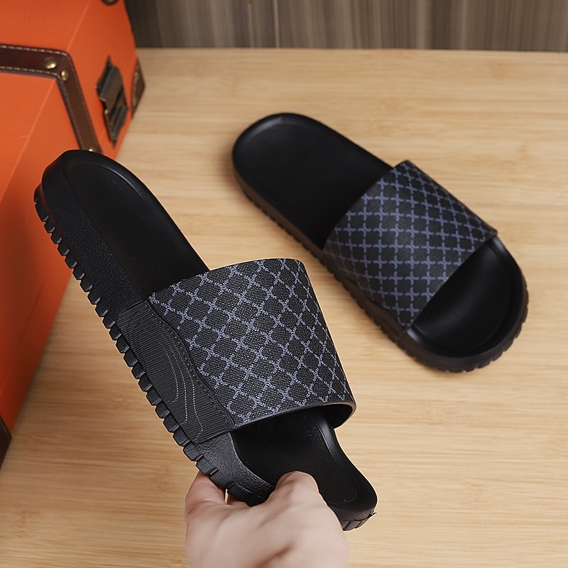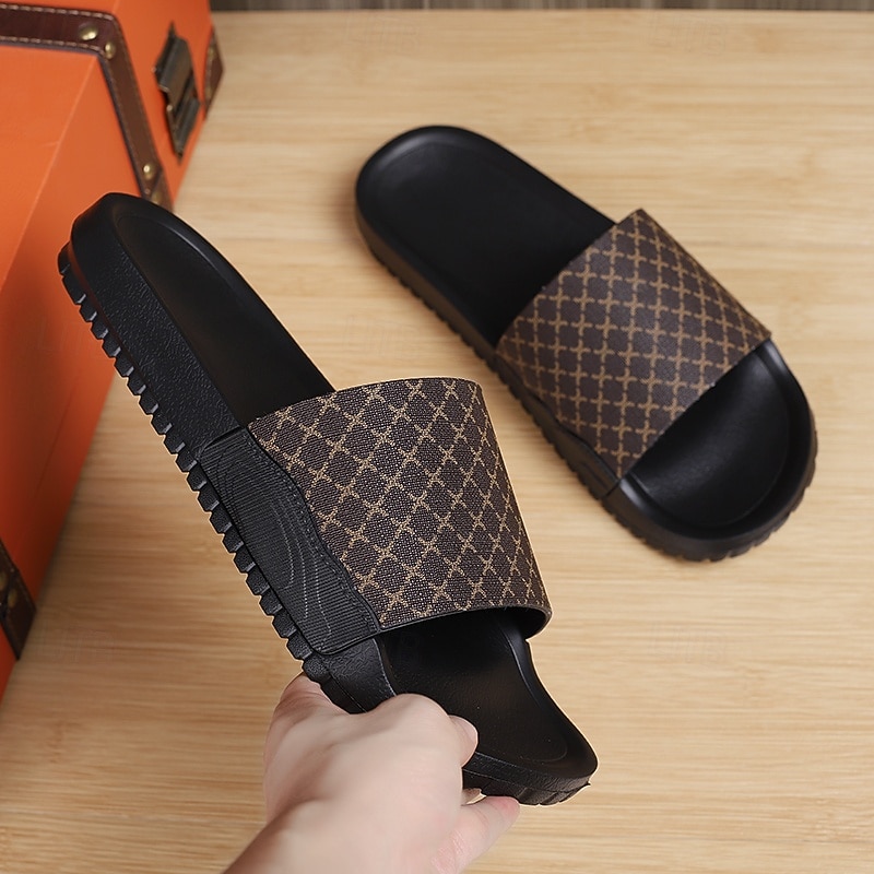 HOT ! Designer Monogram Print Slides for Men - Comfortable Fashion Footwear for Leisure and Beach Days