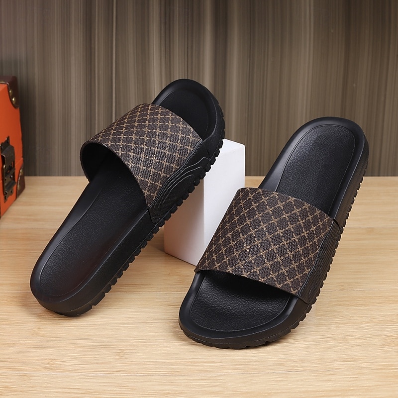 Designer Monogram Print Slides for Men - Comfortable Fashion Footwear for Leisure and Beach Days 24