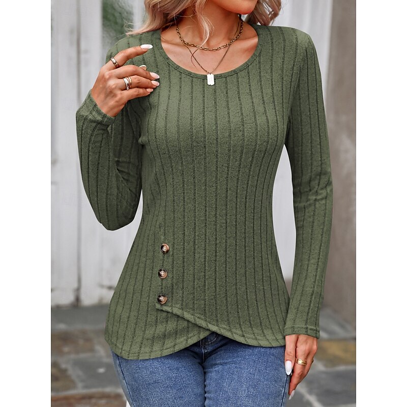HOT ! Women's T Shirt Plain Fashion Modern Casual Long Sleeve Crew Neck Regular Tops Daily Weekend Buttons Fuchsia Brown Green Fall Winter