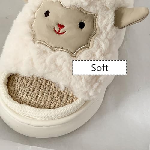 Cute Lamb Slippers Soft Linen Slippers Animal Sheep Summer Cotton Linen Couple's Home Shoes Indoor and Outdoor Open Toe Non-Slip Mute Slippers(8-8.5(240mm), White) 6