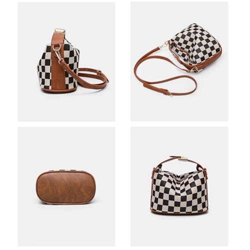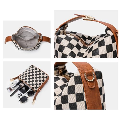 Checkered Crossbody Bag Hobo Bum Bags Alt Trendy Checkered Bum Bag Crossbody with Top Handle 2025 Checkerboard Cylinder Purse 2