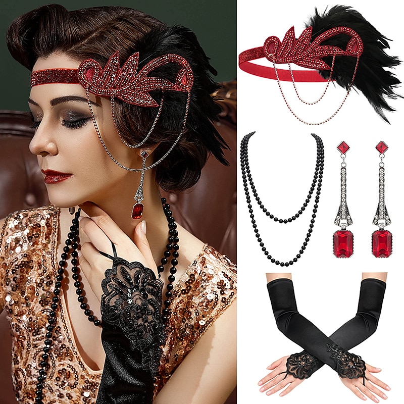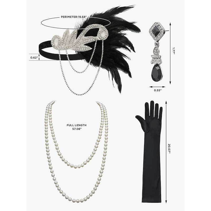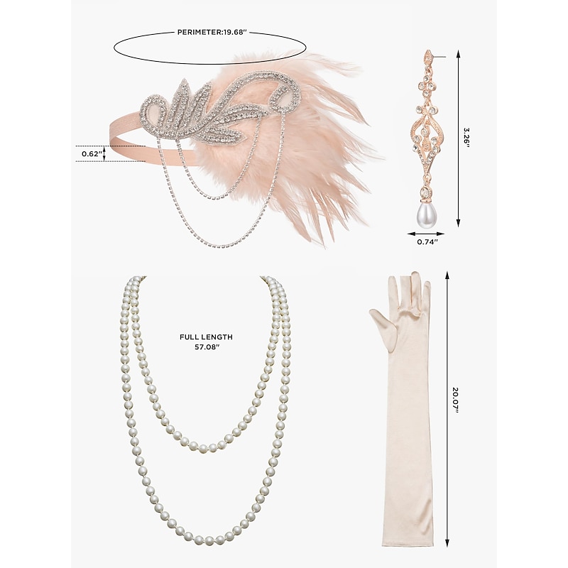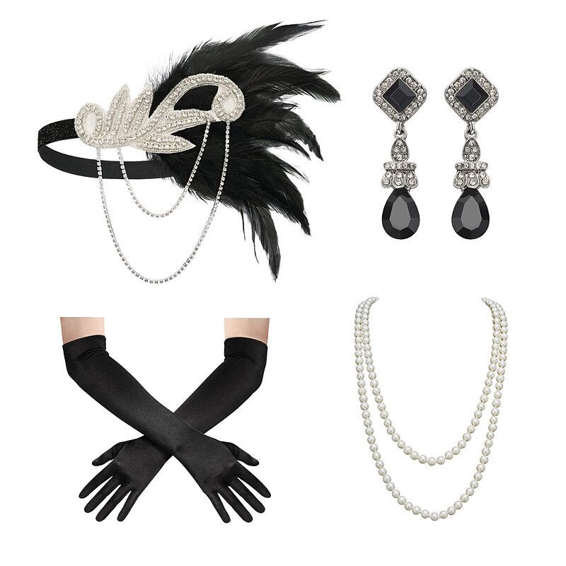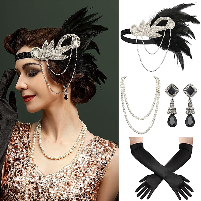 $18.49 - 1920s Flapper Headband Feather Accessories Set for Women 4 PCS Roaring 20s Great Gatsby Faux Pearl Necklace Gloves Earrings Masquerade Halloween Carnival 2025. Shop for cheap Accessories and More online? Buy at lightinthebox.com on sale today!