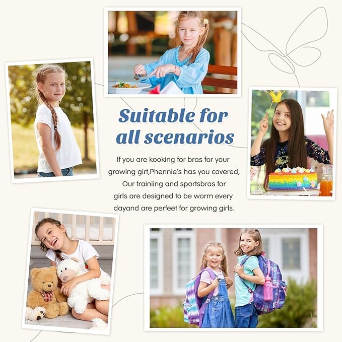 Phennie's Girls Training Bra Girls Sports Bra Cotton Seamless Wireless Unpadded Bralette 5
