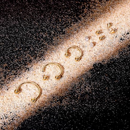 • GOLD SEPTUM NOSE RING:You Can Receive 3PCS Septum Rings and 3 Pairs of Replacement Heads (Spike Style, Ball Style, and Cubic Zirconia Style in one Purchase, Allowing You to Mix and Match According to Your Preferences. This Septum Ring Can Be Used for Septum Piercing, Nose Piercing, Cartilage Piercing, Tragus Piercing, Lip Piercing, and So on. You Can Refer to The Piercing Wearing Picture on Our Details Page