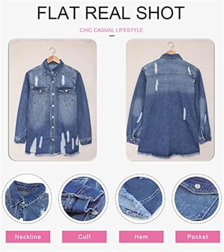 Expectatioin Jacket, Women's Casual Denim Button down Distressed Jacket, Denim Shirt Jacket Long Sleeve Shacket Coat 4