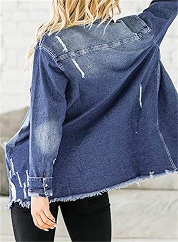 Expectatioin Jacket, Women's Casual Denim Button down Distressed Jacket, Denim Shirt Jacket Long Sleeve Shacket Coat 6